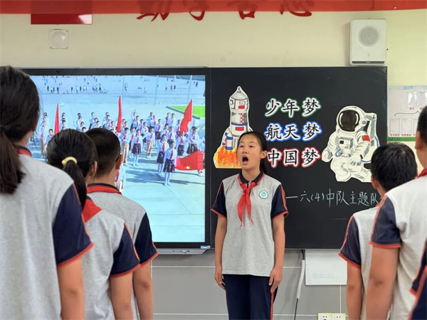 六(4)中队的队员们在中队辅导员钟魏方老师的带领下,开启了仰望星空的旅程——《少年梦 中国梦 航天梦》。这节课将个人理想与国家发展、民族复兴的伟大梦想紧密结合,通过介绍中国航天事业的辉煌成就,激发队员们探索未知、敢于创新的科学精神,树立投身祖国航天事业的远大志向。