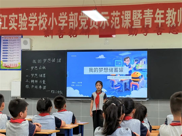四(3)中队开展主题队会活动《我的梦想储蓄罐》。中队辅导员刘乡梨老师通过梦想启航、储蓄、榜样力量和共同承诺四个环节,引导队员树立目标、坚定信念,展现了优秀的辅导员专业素养与育人智慧。