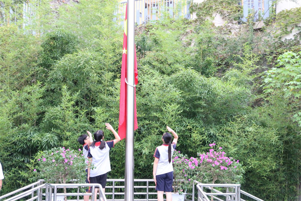 在庄严的国歌声中,五星红旗冉冉升起,全体师生肃立行礼,齐唱国歌。孩子们稚嫩而坚定的歌声在校园回荡,清澈的眼神中满怀着对新学期的期待。