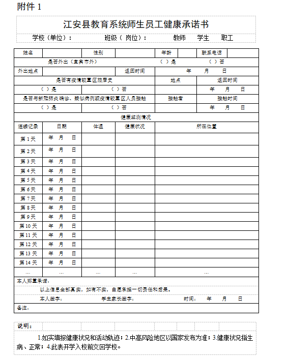 4.上交幼儿“健康承诺书”(纸质档)到班主任处。