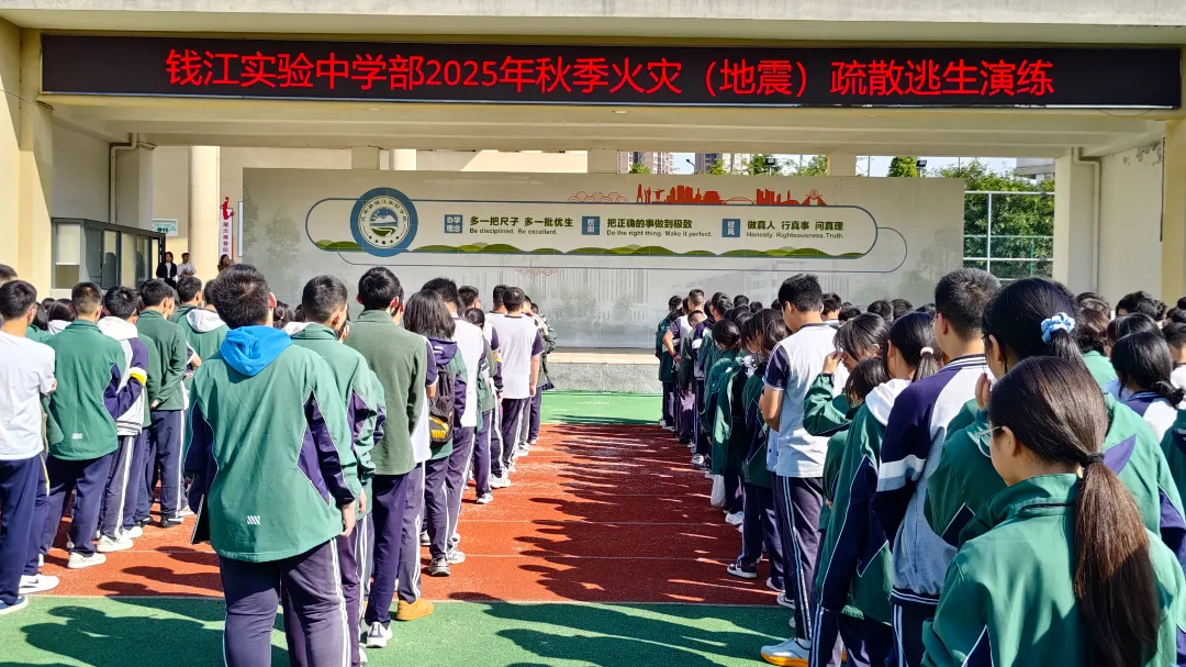 以练筑防,共护平安校园--江安县钱江实验中学部成功举行2025年秋季火灾(地震)疏散逃生演练
