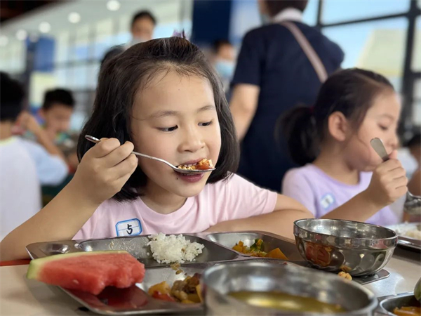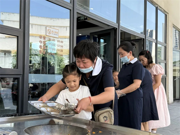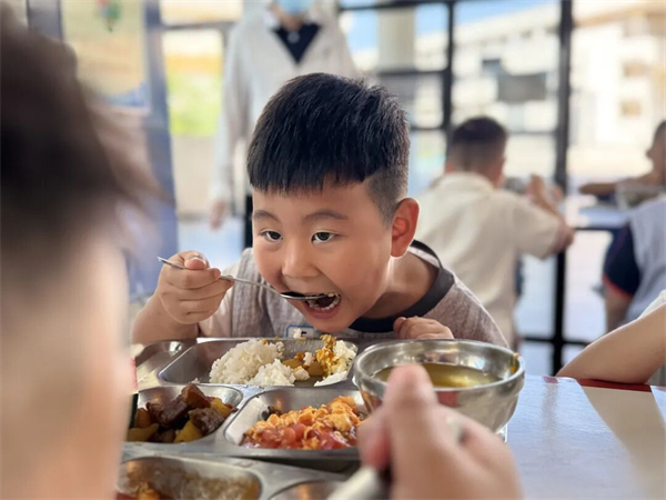 生活老师们穿梭于餐桌之间,时而轻声提醒,时而弯腰帮助孩子扶稳汤碗,时而为挑食的孩子温柔鼓励。