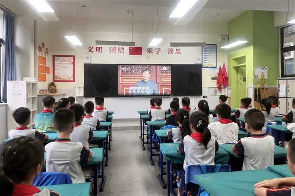 今天上午9时,纪念大会在北京天安门广场隆重举行。为深切缅怀革命先烈,弘扬伟大抗战精神,激发广大师生的爱国热情与历史责任感,钱江教育党委、钱江教育团委、钱江实验少先队大队部、学生发展中心联合组织全校师生集中收看了大会现场直播盛况。