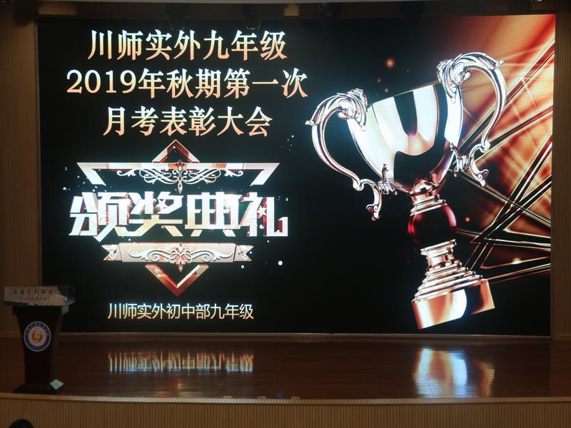 10月10日 年级召开了第一次月考表彰大会,初中部各领导和全体九年级教师参加了大会。大会颁发了进步之星、单科状元、年级前十、金银牌班级。全年级学生深受鼓舞。