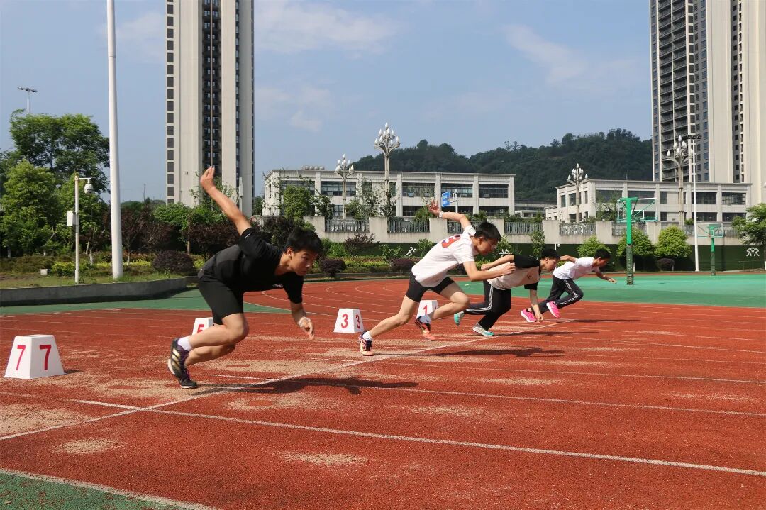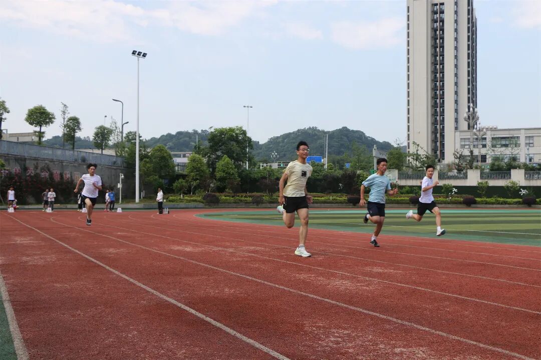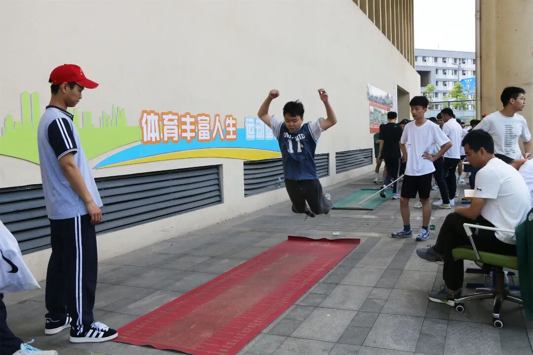 在田径场上,体育类考生们依次参加了立定跳远、短跑100米、铅球三项测试,考生们奋力跳跃,努力奔跑,像离弦的箭一般冲向终点,无不展示了青少年奋发向上的风采,诠释了永不放弃的体育精神。