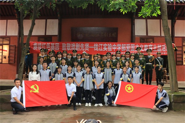 为隆重庆祝中华人民共和国成立76周年,深化爱国主义教育,弘扬民族精神,引导广大团员青年深入了解中国现代文化艺术的光辉历史,特别是抗战时期戏剧先贤们的爱国情怀与艺术追求,9月30日上午,钱江实验中学部组织部分团员代表及学校国旗护卫队全体成员,前往具有“中国戏剧摇篮”之称的江安县国立剧专旧址历史陈列馆,开展了一场富有深刻教育意义的主题实践活动。